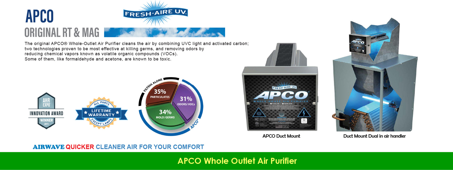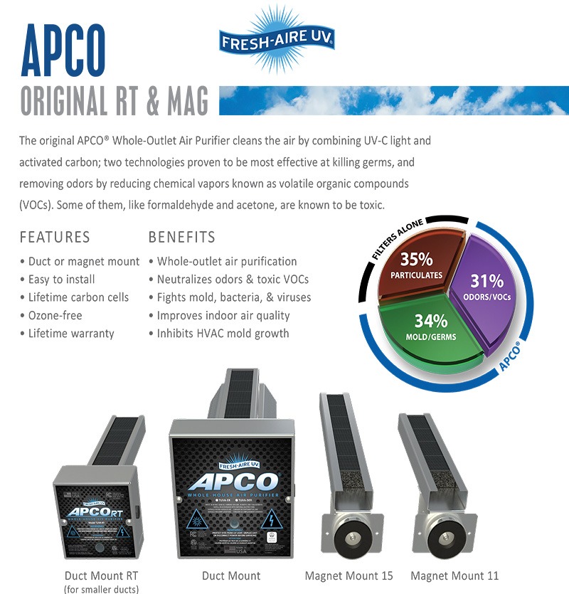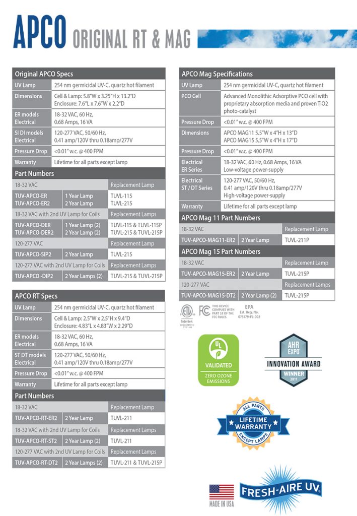 - “FRESH-AIRE” APCO Duct Mount UVC Light and Activated Carbon (Made in U.S.A)