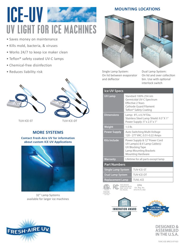 - “FRESH-AIRE” ICE-UV for ICE Machines (Made in U.S.A)